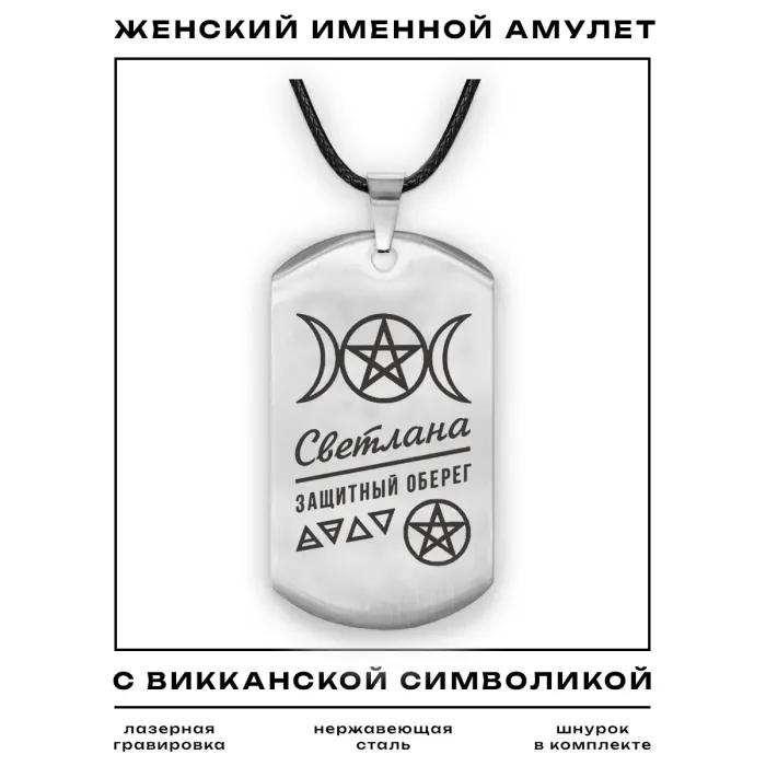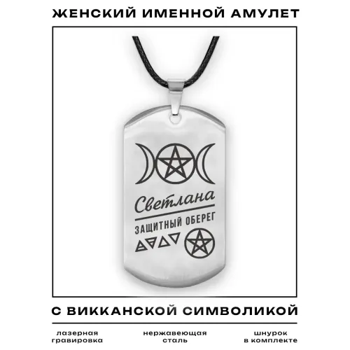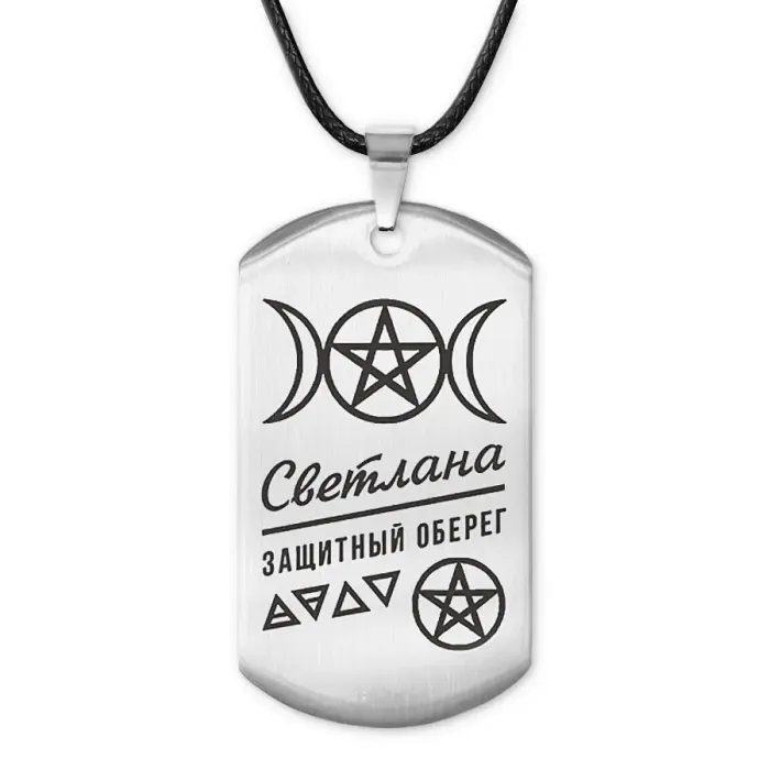 Именной сувенирный кулон-жетон из нержавеющей стали с лазерной гравировкой изображения на одной стороне.