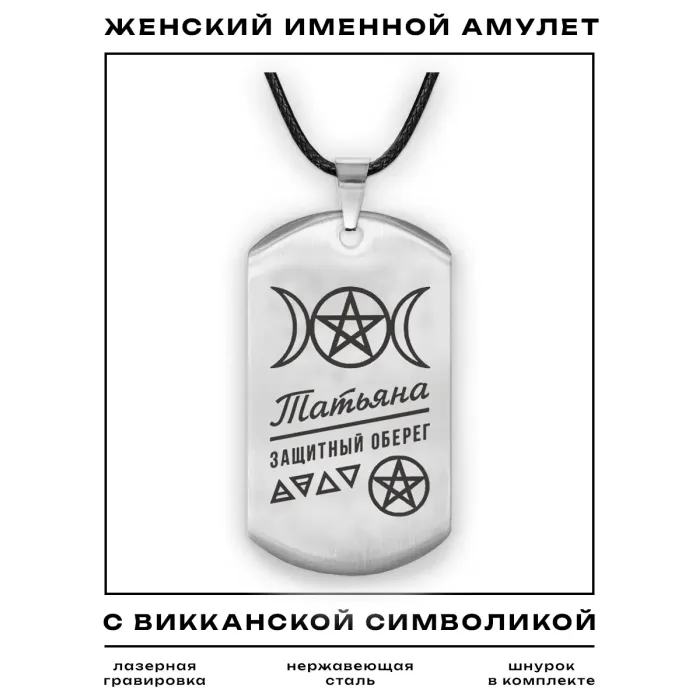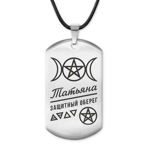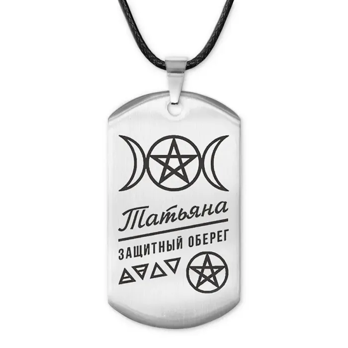 Именной амулет-кулон из нержавеющей стали с лазерной гравировкой на одной стороне.