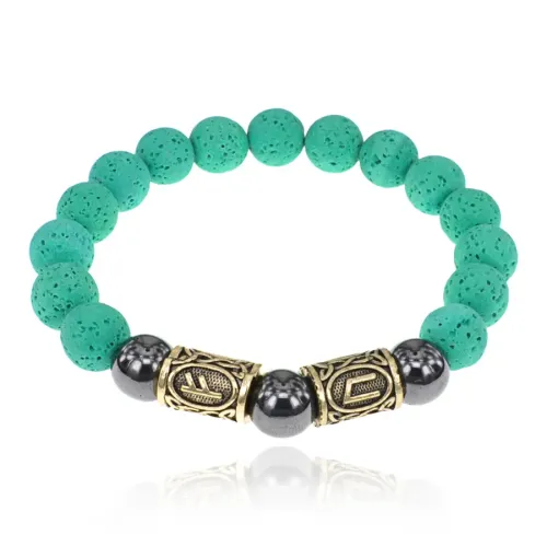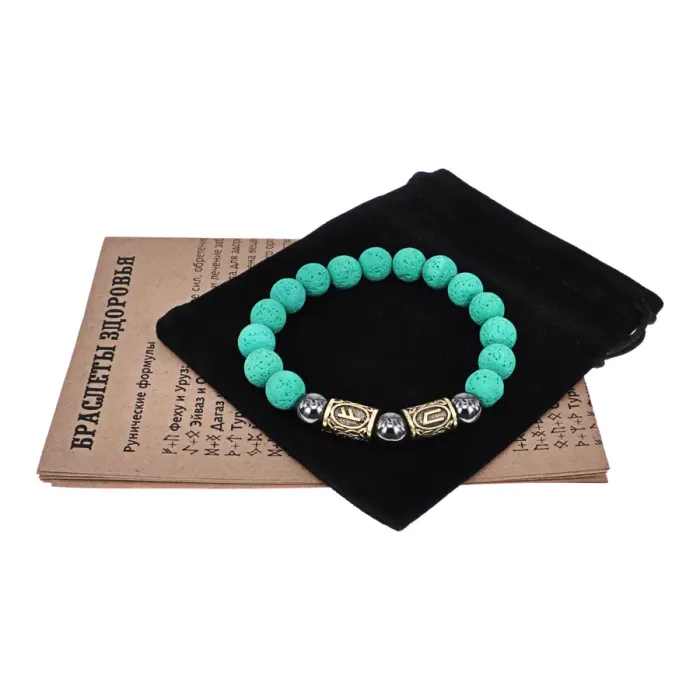 Магнитный аромабраслет Восстановление сил, энергия и баланс BSZRG-01 — стильный аксессуар из натуральной лавы с уникальными руническими формулами. Браслет впитывает эфирные масла, создавая индивидуальный аромат и гармонию. Основные особенности: - Стрейч-браслет из лавы с магнитами и рунической формулой здоровья. - Формулы Феху и Уруз восстанавливают силы и энергию. - В комплекте буклет с целебными свойствами рун и рекомендациями по использованию масел. - Элегантный бархатный мешочек для хранения добавляет практичности. - Размер: внутренний диаметр 6 см, бусины диаметром 10 мм; руны из бижутерного сплава с золотым покрытием. Для максимального эффекта рекомендуется наносить эфирное масло на бусины перед ноской, создавая приятный аромат и позитивную энергетику. Браслет станет отличным подарком или уютным дополнением к образу.
