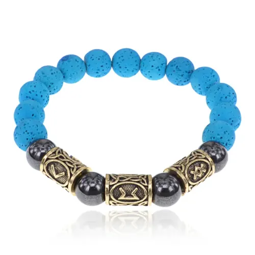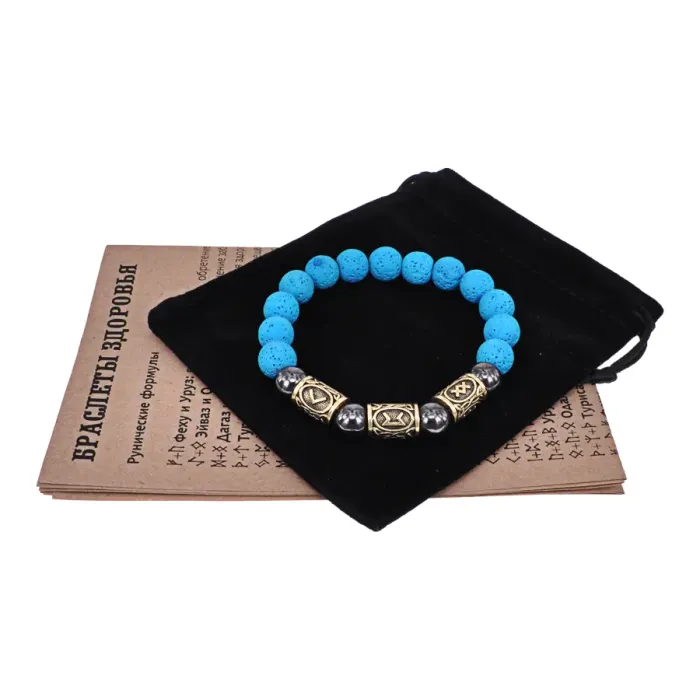 Магнитный аромабраслет Укрепление иммунитета BSZRG-16 — стильное и функциональное украшение из натурального камня лавы, способствующее созданию гармоничной атмосферы. Основные особенности: - Стрейч-браслет из лавы с магнитами и рунической формулой здоровья обеспечивает удобство в носке и долговечность. - Руническая формула «Кеназ, Перт, Ингуз» традиционно используется для укрепления иммунной системы. - В комплект входит буклет с описанием целебных рунических формул и рекомендациями по использованию эфирных масел. - Браслет упакован в бархатный мешочек, что делает его отличным вариантом для подарка или создания уюта. Советы по использованию: рекомендуется наносить несколько капель эфирного масла на камни браслета для максимального эффекта. Внутренний диаметр составляет около 6 см, подходит для мужской руки.