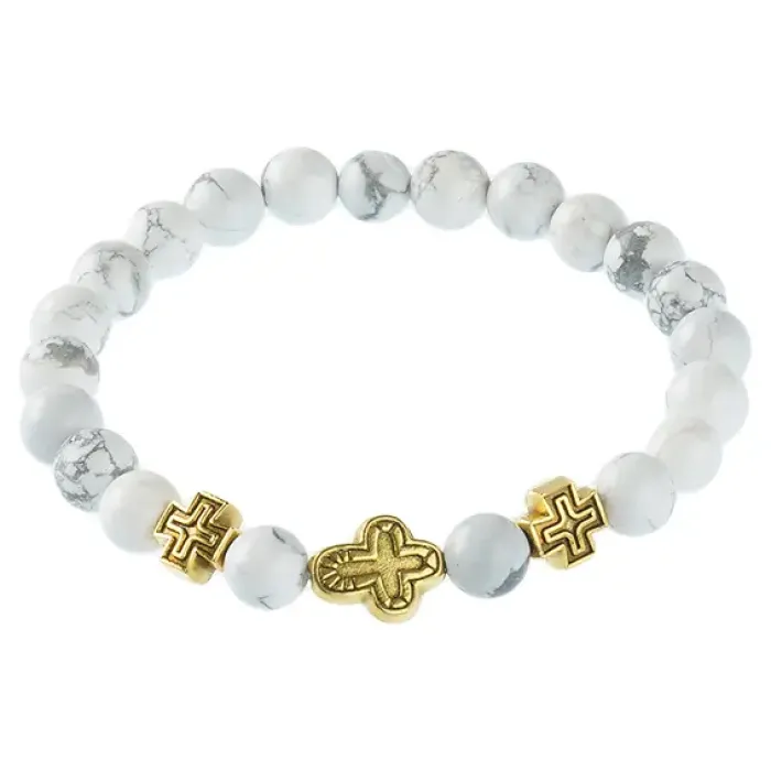 Православный стрейч-браслет из натурального камня кахолонг с гравировкой «Спаси и сохрани».