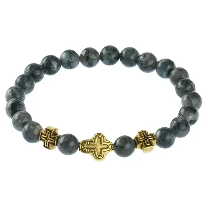 Православный стрейч-браслет из натурального камня лабрадор с бусинами диаметром 8 мм.