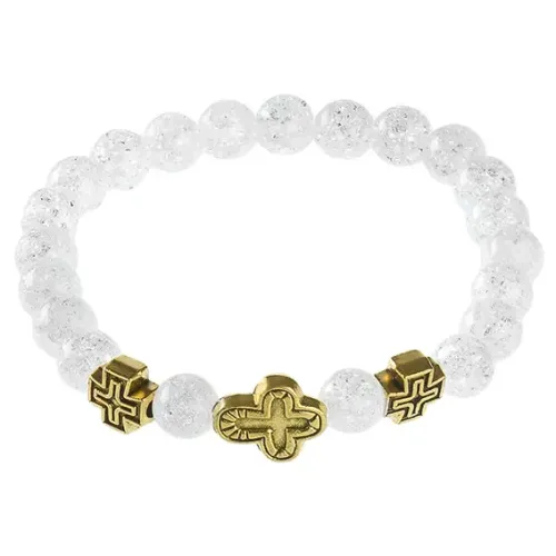 Православный стрейч-браслет из натурального сахарного кварца с надписью «Спаси и сохрани».