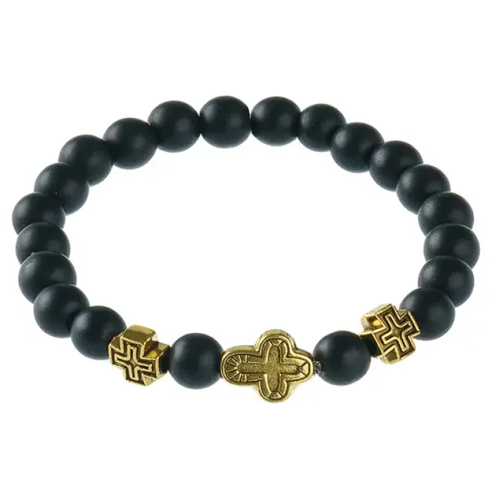Православный стрейч-браслет из натурального шунгита с надписью «Спаси и сохрани».