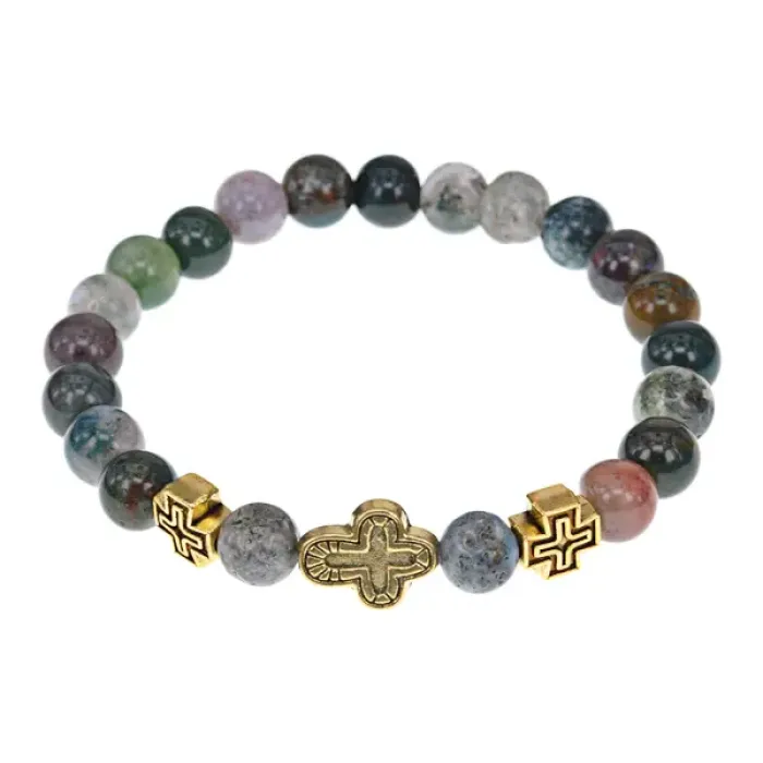 Православный стрейч-браслет из натуральной яшмы с надписью «Спаси и сохрани».