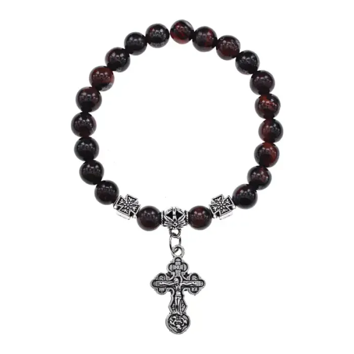 Православный стрейч-браслет с натамнем из натурального камня Бычий глаз.