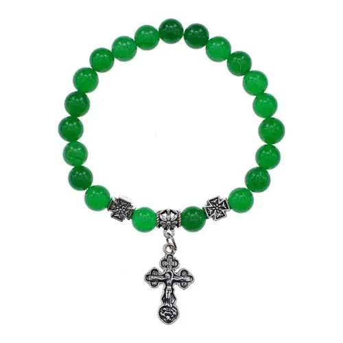 Православный стрейч-браслет из натурального нефрита с гравировкой «Спаси и сохрани».