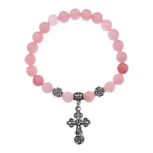 Браслет «Спаси и сохрани» — это православный стрейч-браслет, выполненный из розового кварца. Этот камень символизирует любовь, притягательность и гармонию, а также способствует созданию крепких семейных уз. Внутренний диаметр браслета составляет около 5,2 - 5,5 см, а диаметр каменных бусин — 8 мм.