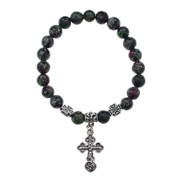 Православный стрейч-браслет из натурального камня с надписью «Спаси и сохрани».