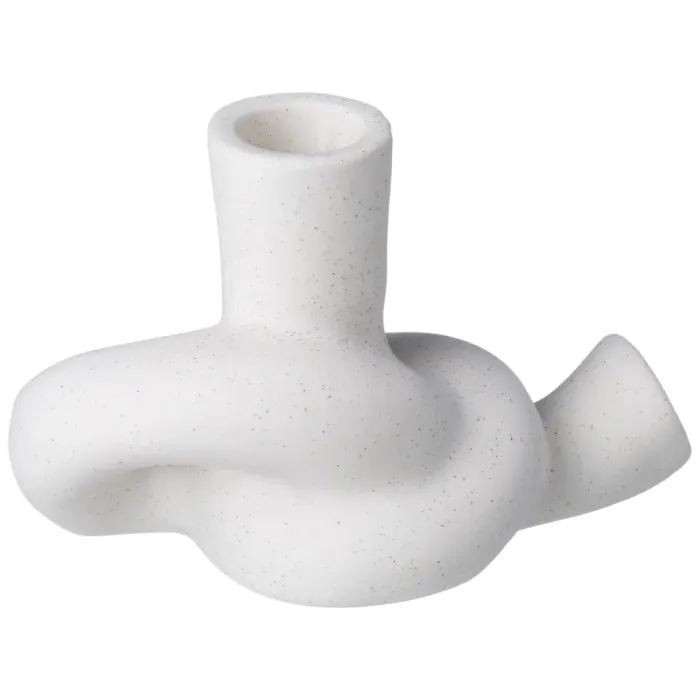 Подсвечник выполнен из керамики, что обеспечивает его прочность и долговечность. Элегантная форма и универсальный дизайн позволяют ему гармонично вписаться в различные стили интерьера. Компактные размеры делают его удобным для размещения на столах, полках или каминах.