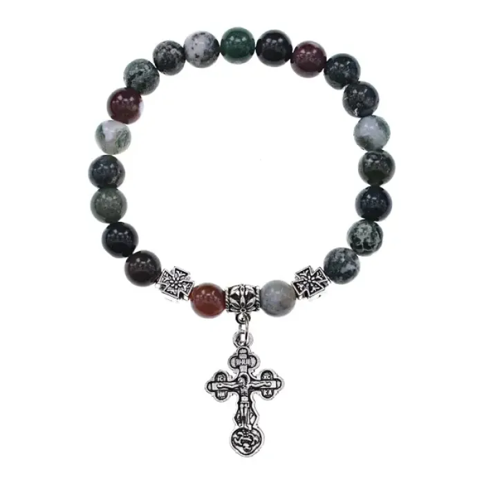 Православный стрейч-браслет из яшмы, символизирующий защиту и благополучие. Этот браслет не только стильный аксессуар, но и оберег, который традиционно используется для очищения и сосредоточения. Внутренний диаметр составляет 5,2 - 5,5 см, а диаметр каменных бусин — 8 мм. Яшма известна своими свойствами: она помогает в достижении здоровья и удачи, защищает от негативных эмоций и неблагоприятных ситуаций. Такой браслет станет прекрасным подарком или личным амулетом в путешествиях.