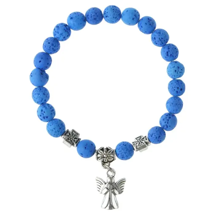 Браслет Спаси и сохрани с Ангелом-хранителем, лава, 8мм, цвет синий BSVE4-05