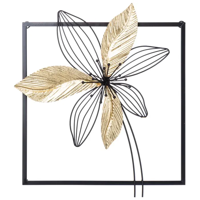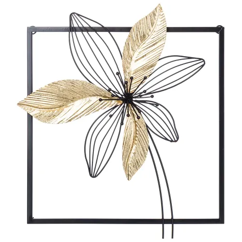 Панно имеет конструкцию, позволяющую легко закрепить его на стене. Металлический материал гарантирует устойчивость к внешним воздействиям, а размеры 37,5 х 44,5 х 5,1 см делают изделие заметным акцентом в декоре комнаты. Эстетичное оформление с цветочными элементами добавляет интерьеру свежести и оригинальности.