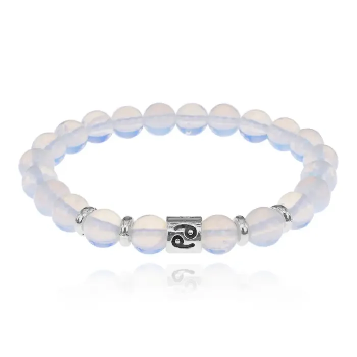 Браслет Знаки Зодиака - Рак с синтетическим Лунным камнем 8мм BSZE01-04