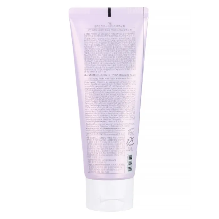 Увлажняющая очищающая пенка Collagen EX Hydra Cleansing Foam от The Saem предназначена для тщательного удаления загрязнений с кожи, одновременно поддерживая её увлажнённой. Формула средства обогащена низкомолекулярным рыбным коллагеном и пятью видами церамидов, которые способствуют повышению упругости и увлажненности кожи. При контакте с водой образуются плотные коллагеновые пузырьки, эффективно очищающие лицо.