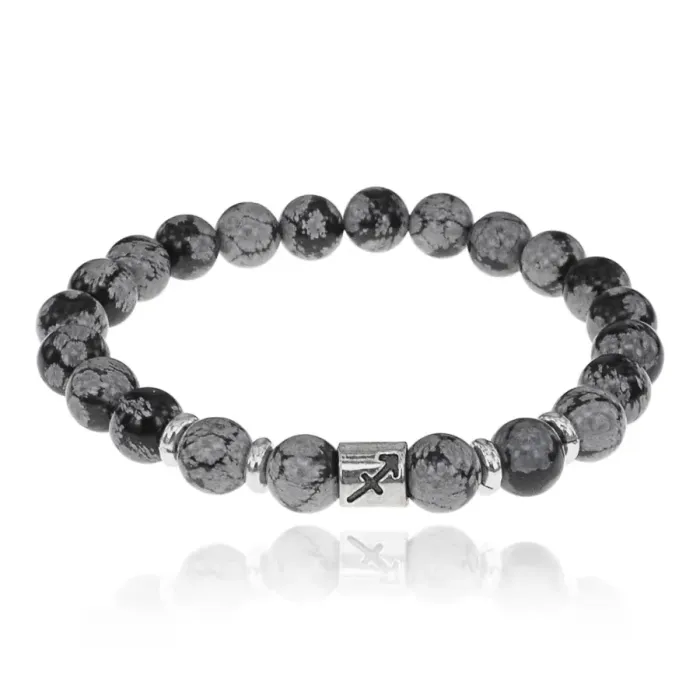 Браслет Знаки Зодиака - Стрелец с натамнем Снежный обсидиан 8мм