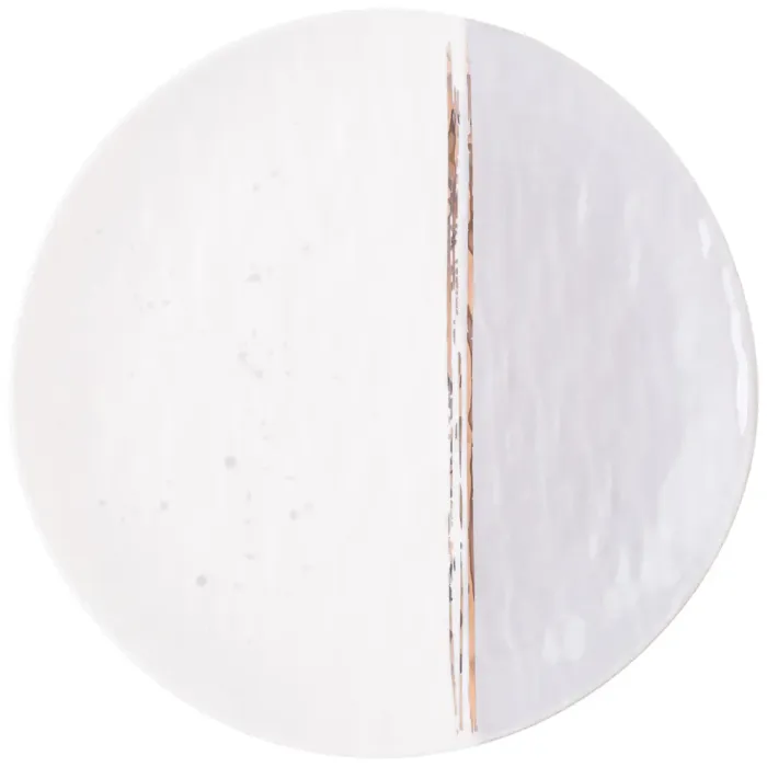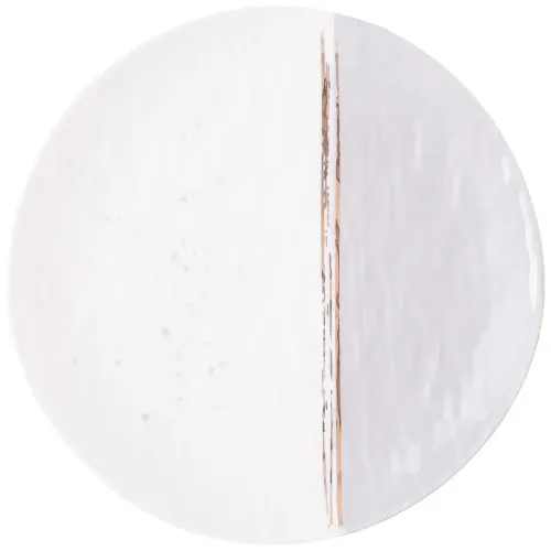 Тарелки изготовлены из упрочнённого фарфора, безопасного для контакта с пищей. Материал обладает повышенной прочностью, что обеспечивает устойчивость к механическим воздействиям при ежедневном использовании. Декоративные золотые полосы нанесены по краю изделия.