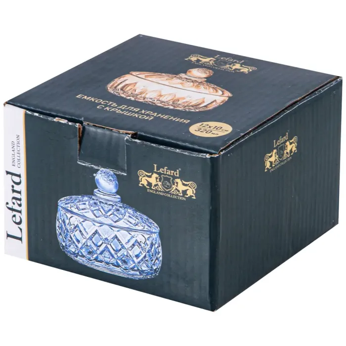Емкость для хранения с крышкой Lefard Diamant предназначена для организации и хранения мелких предметов. Изделие выполнено из стекла и украшено декоративным узором.