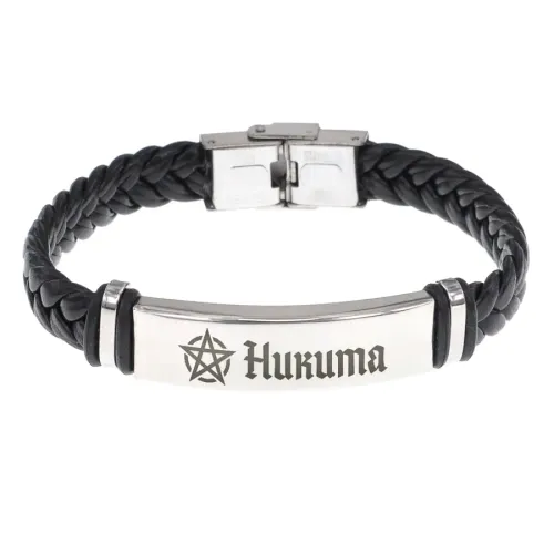 Именной браслет-оберег с гравировкой. Изготовлен из кожи и нержавеющей стали, имеет плетёный дизайн.
