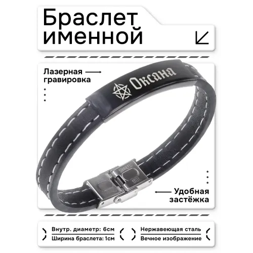 Именной браслет-оберег из кожи и нержавеющей стали с гравировкой.
