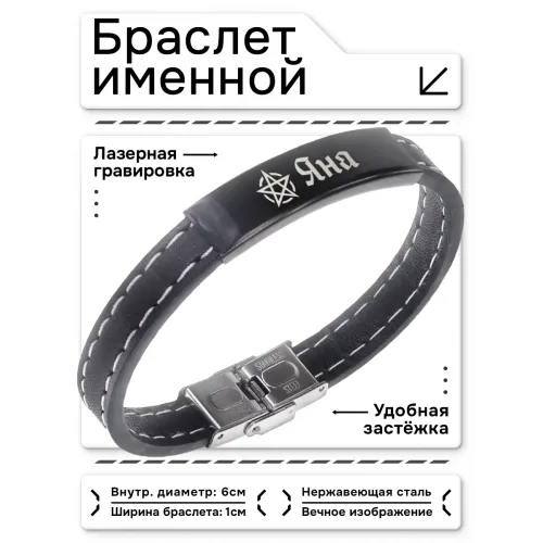 Именной браслет из кожи и нержавеющей стали с гравировкой.
