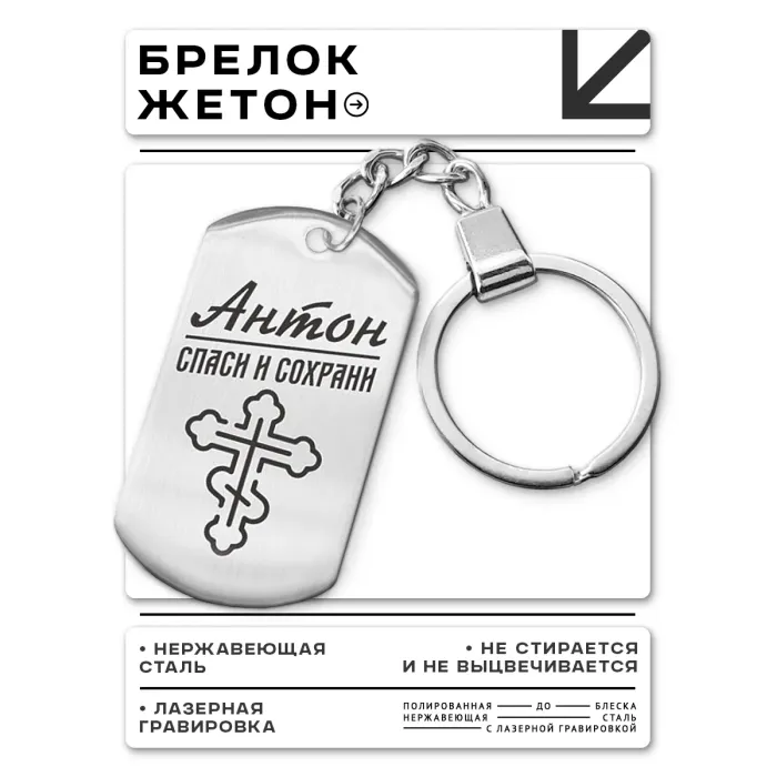 Именной брелок-жетон из нержавеющей стали с лазерной гравировкой.