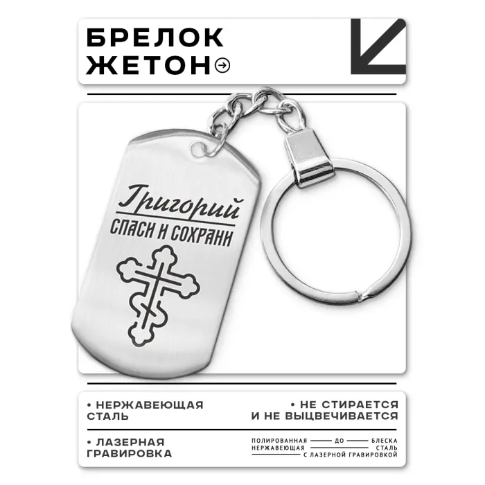 Именной брелок-жетон из нержавеющей стали с зеркальной полировкой.