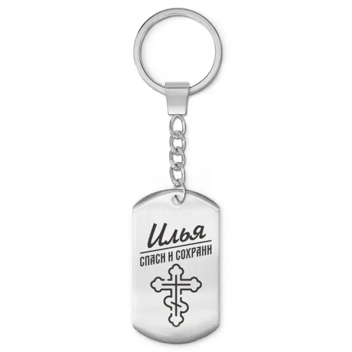 Именной брелок-жетон из нержавеющей стали с односторонней лазерной гравировкой.