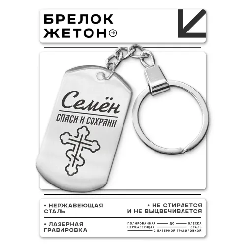 Именной брелок-жетон из нержавеющей стали с односторонней лазерной гравировкой.