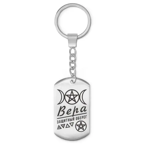 Именной брелок-жетон из нержавеющей стали с зеркальной полировкой и односторонней лазерной гравировкой.
