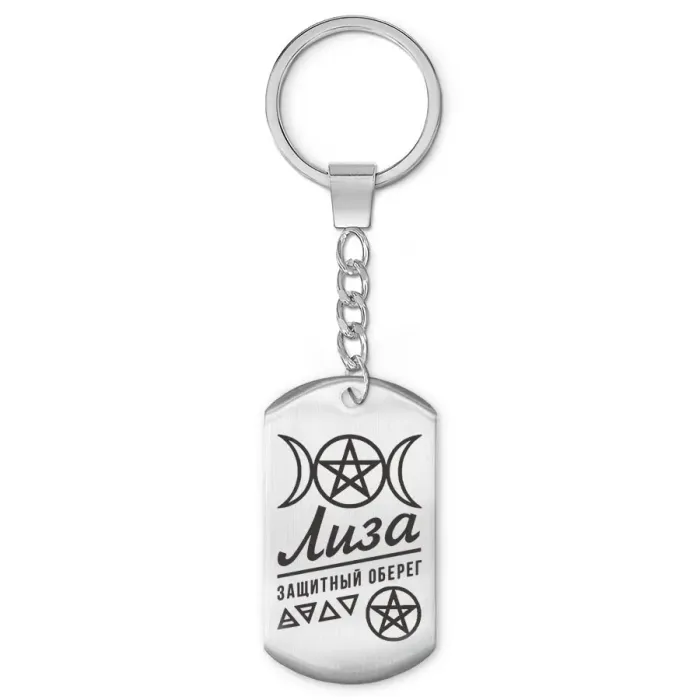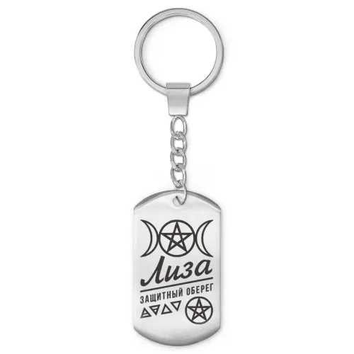 Именной брелок-жетон из нержавеющей стали с односторонней лазерной гравировкой.