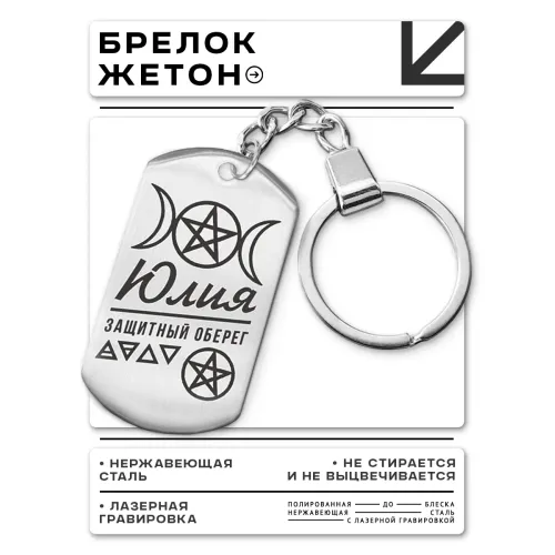 Именной брелок-жетон из нержавеющей стали с односторонней лазерной гравировкой.