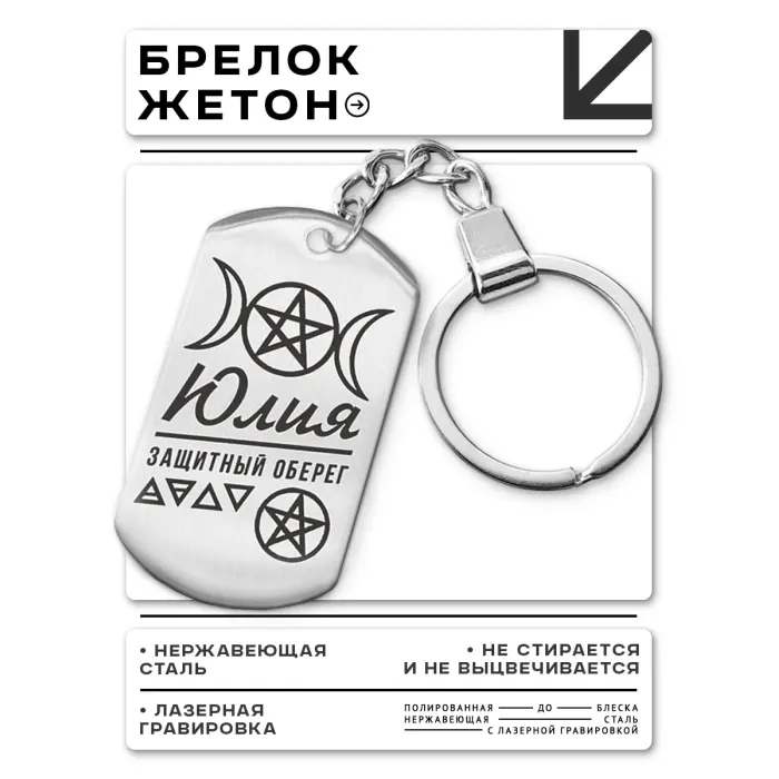 Размеры и комплектация: Размер жетона 50х28 мм, в комплекте кольцо для ключей.