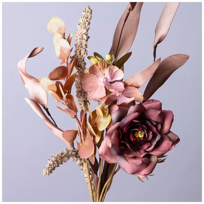 Букет искусственных цветов идеально вписывается в интерьер любого помещения — от гостиной до ванной комнаты. Для поддержания эстетичного вида рекомендуется периодически очищать его от пыли с помощью фена.