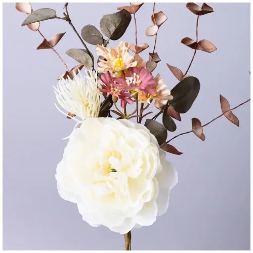 Искусственный букет прекрасно сочетается с различными стилями интерьера благодаря универсальному дизайну. Подходит для использования в местах без естественного света и не требует специфического ухода за исключением периодической очистки от пыли.
