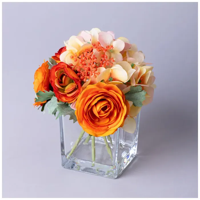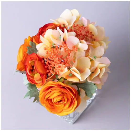 Букет искусственных цветов в квадратной вазе от Lefard предназначен для украшения интерьера. Композиция из ярких и реалистичных цветков станет стильным акцентом в любом помещении, будь то дом или офис. Искусственные цветы не требуют ухода, что делает их удобным решением для декора.
