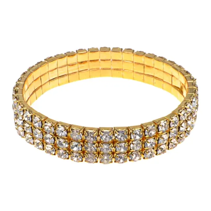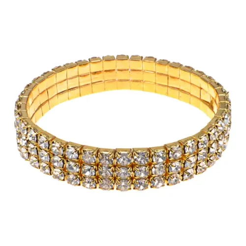 Бижутерный стрейч-браслет с покрытием под золото и вставками из стразов.