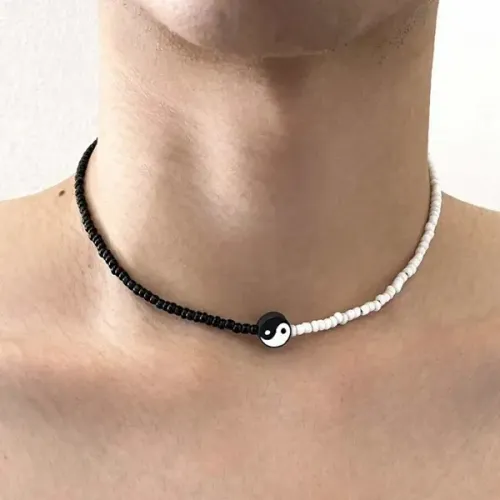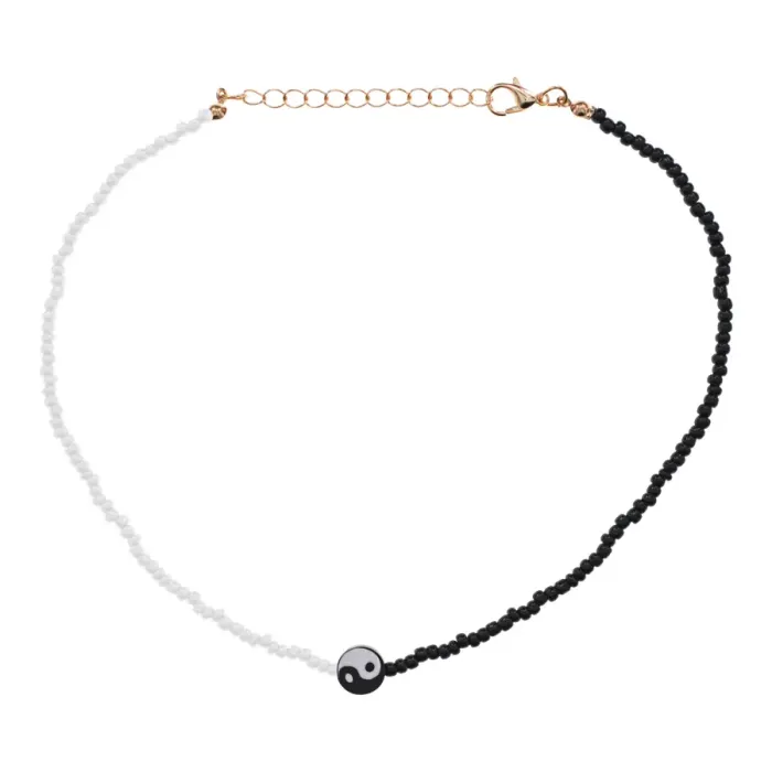 Колье Инь-Ян — украшение из бисера и металла с пластиковой вставкой и замком типа лобстер.