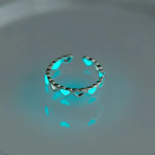 Светящееся в темноте безразмерное кольцо Сердце, цвет бирюзовый KL469-01
