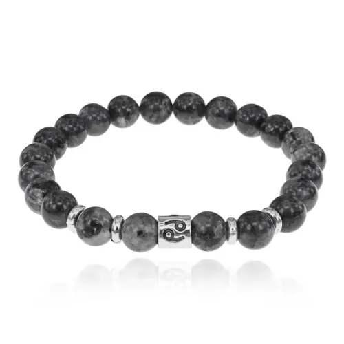 Стрейч-браслет с символом знака зодиака Рак, изготовленный из бусин натурального лабрадора.