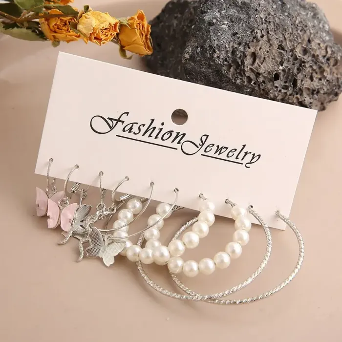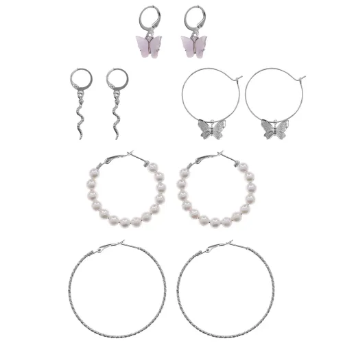 Набор из пяти пар серег для личного использования. Материал — бижутерный сплав с покрытием под серебро, дизайн в различных формах.