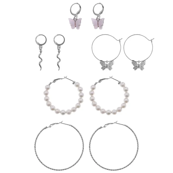 Набор из пяти пар серег, цвет серебряный SEN010-01