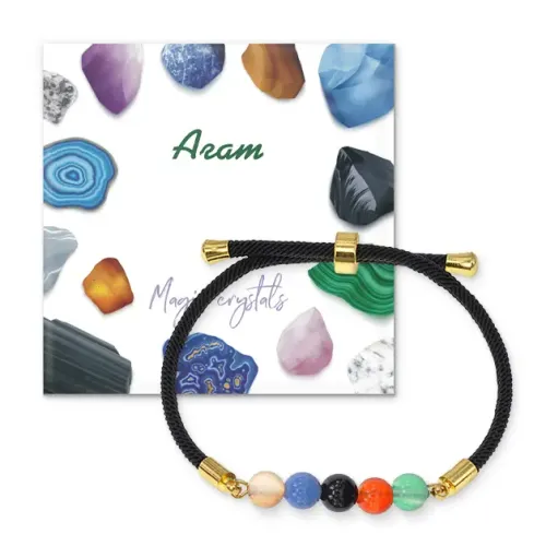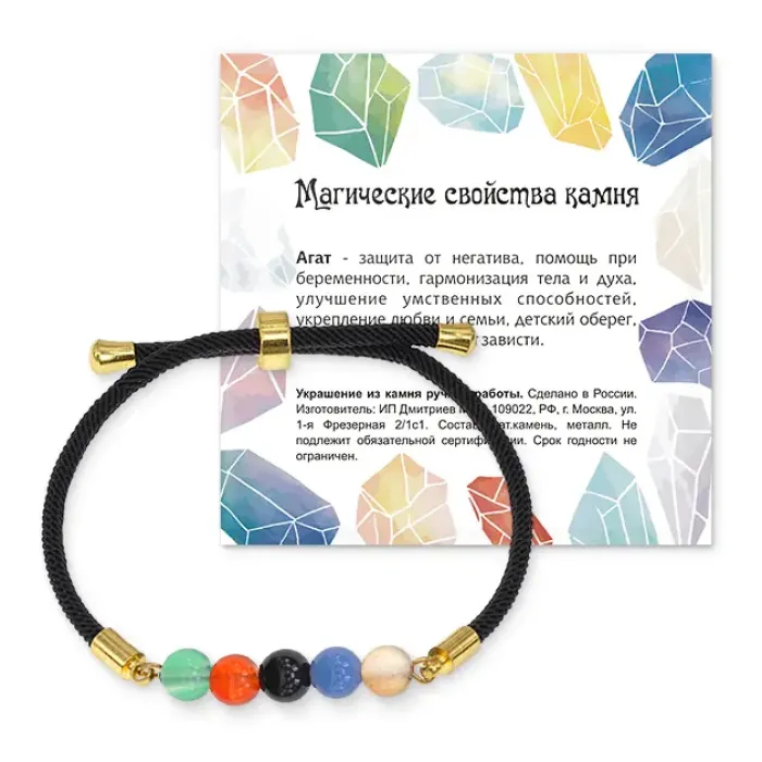 Браслет для запястья из натурального агата на регулируемом черном шнуре.