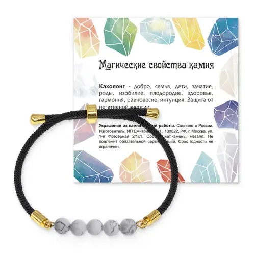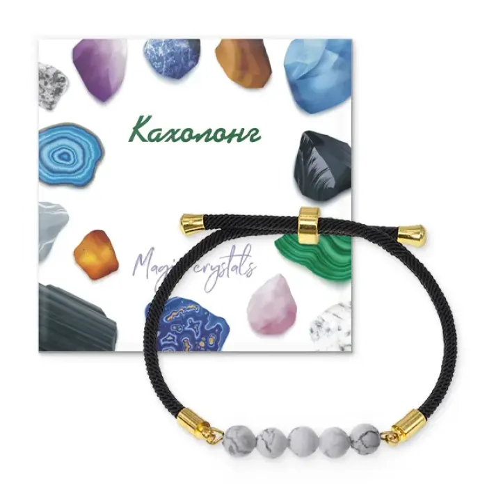 Браслет из натурального камня кахолонг на регулируемом черном шнуре.