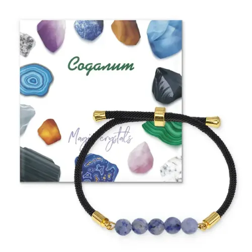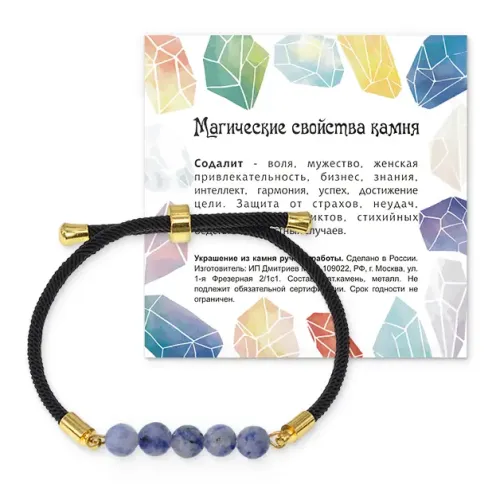 Браслет с бусинами из натурального камня содалит на черном шнуре. Регулируется по размеру.