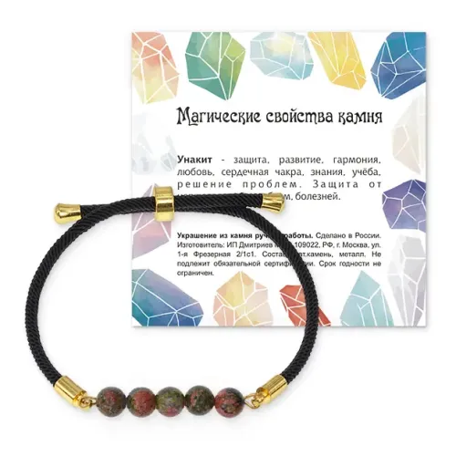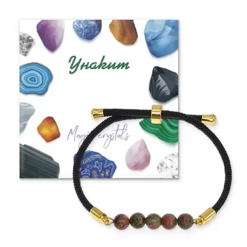 Браслет из натурального камня унакит на регулируемом черном шнуре.
