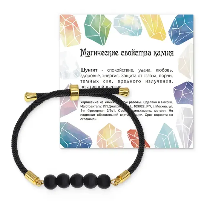 Размеры и комплектация: Диаметр бусин — 6 мм, диаметр шнура — 3 мм. Максимальный внутренний диаметр браслета — 7 см. Упаковка — прозрачный полипропиленовый пакет с подвесом и вкладышем.