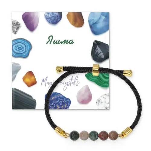 Браслет с Яшмой зеленой на черном шнуре BSF1-24