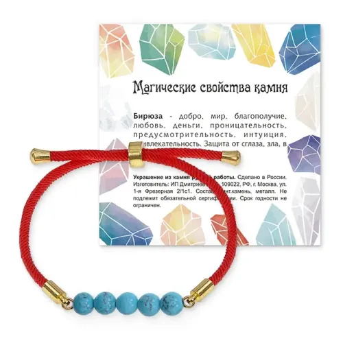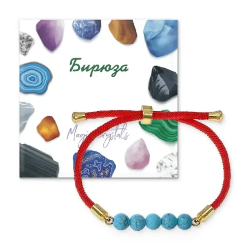 Браслет из синтетической бирюзы на регулируемом красном шнуре.