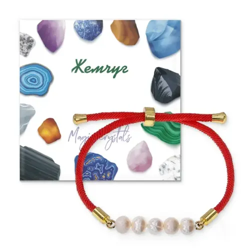 Браслет с жемчугом натуральным речным на красном шнуре BSF2-07